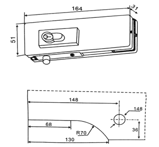 Herraje Cerradura Piso Puerta Protex,SS304 Satin, 3 Llaves cantidad