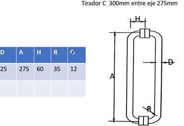 Tirador C 300mm SS304 Satín 25mm C:200 cantidad
