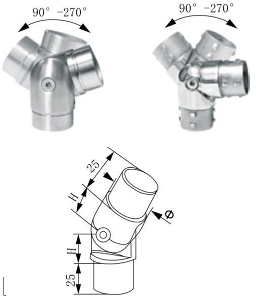 Conector Regulable para Tubo 2″ Pasamanos SS304